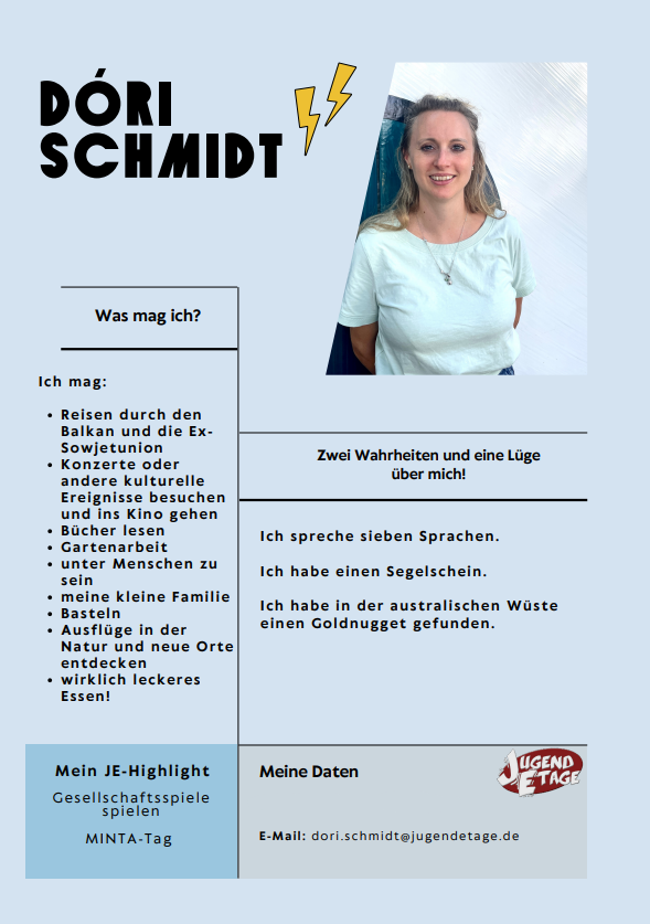 Team Bundesfreiwilligendienst Ehrenamtliche Zuza Julian Isa Carina Joana Gilian Max Sila Victoria Alex Rahim Nancy Finja Eti Havighorster Redder 50, 22115 Hamburg +49 40 716 012 72 mail@jugendetage.de Impressum Datenschutz